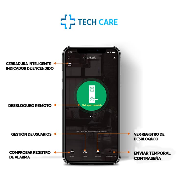 - Múltiples Formas de Desbloqueo: Accede a tu hogar de diversas maneras: tarjeta, huella dactilar, contraseña, llave mecánica o la aplicación móvil.